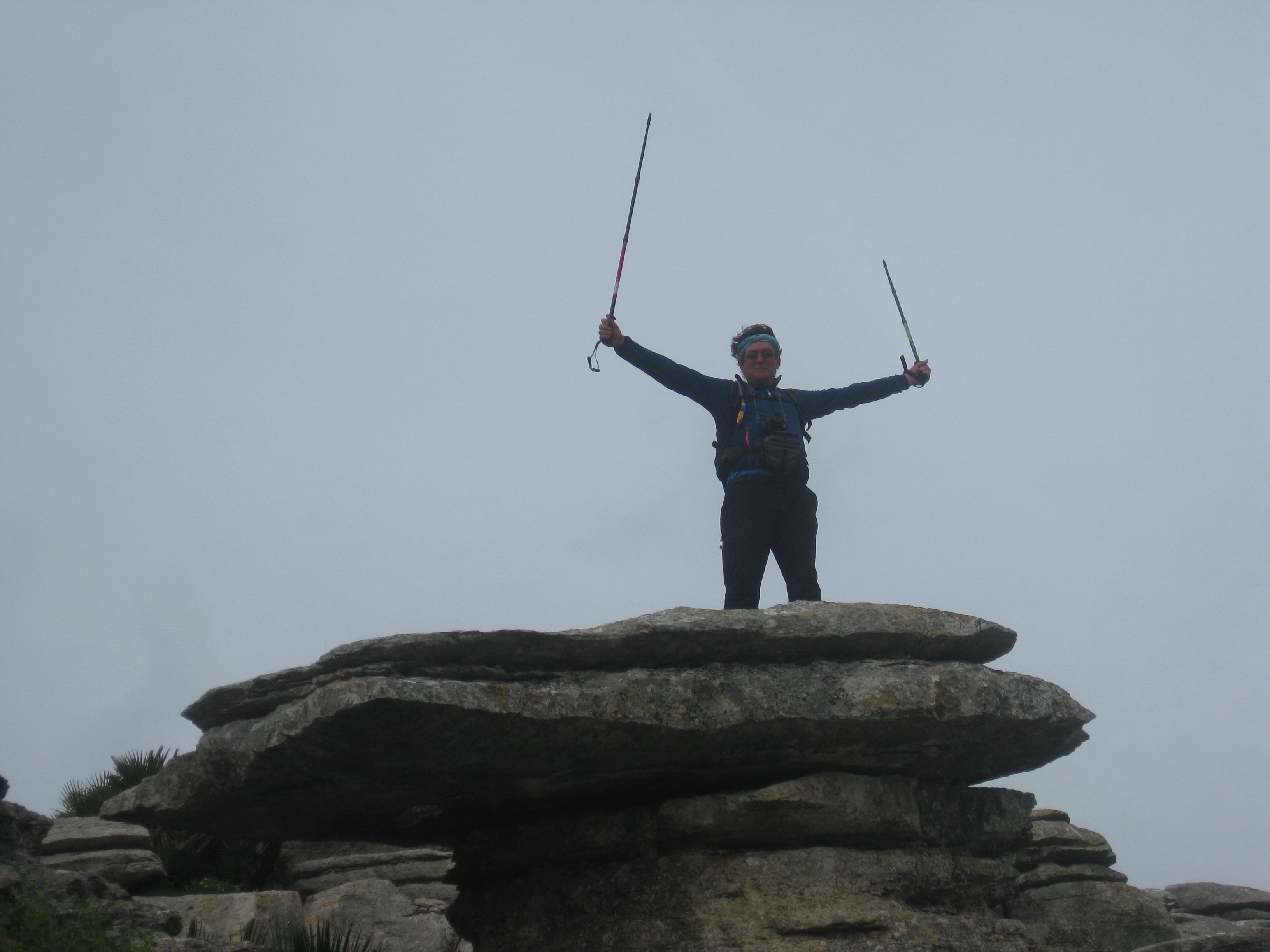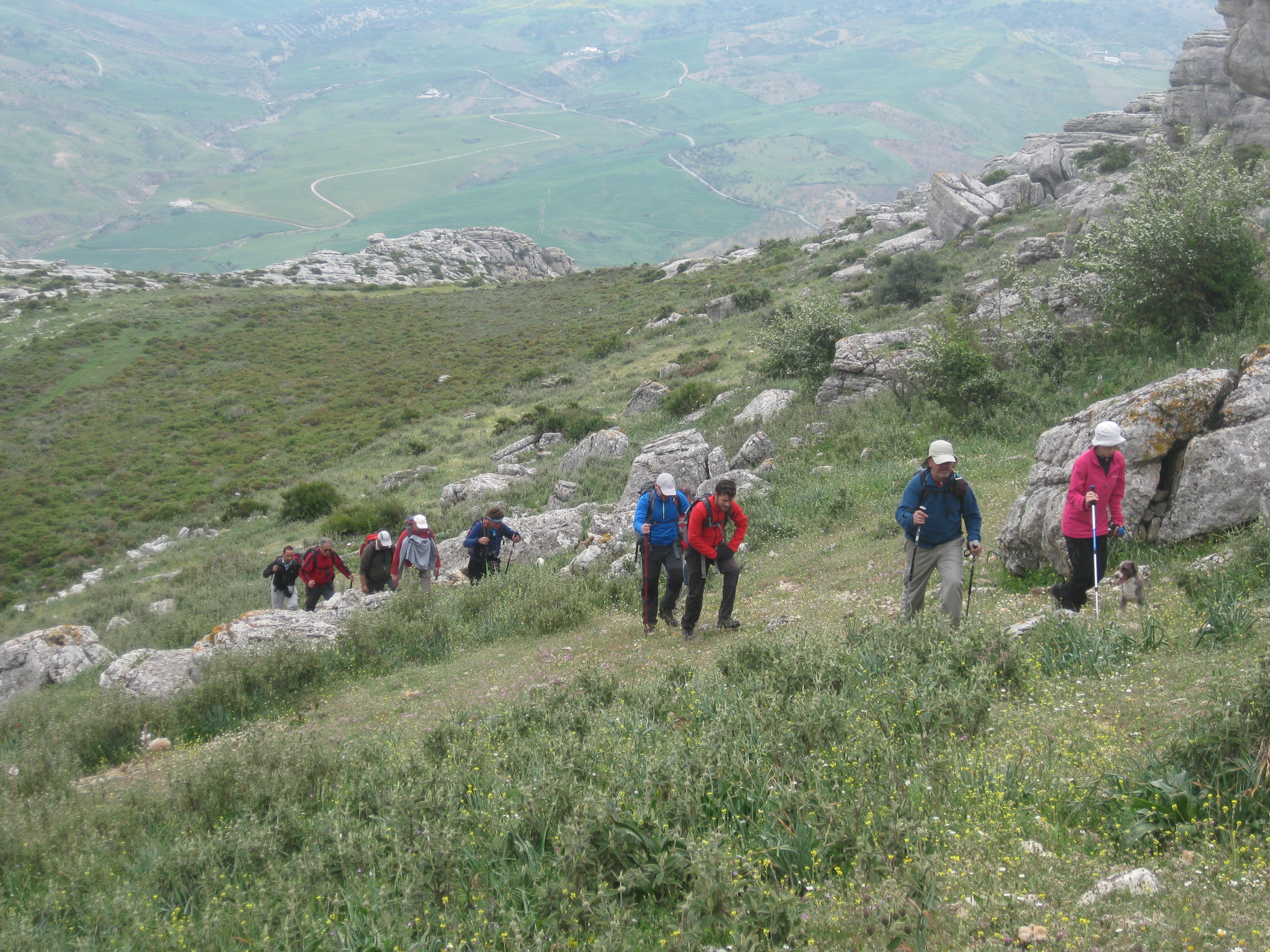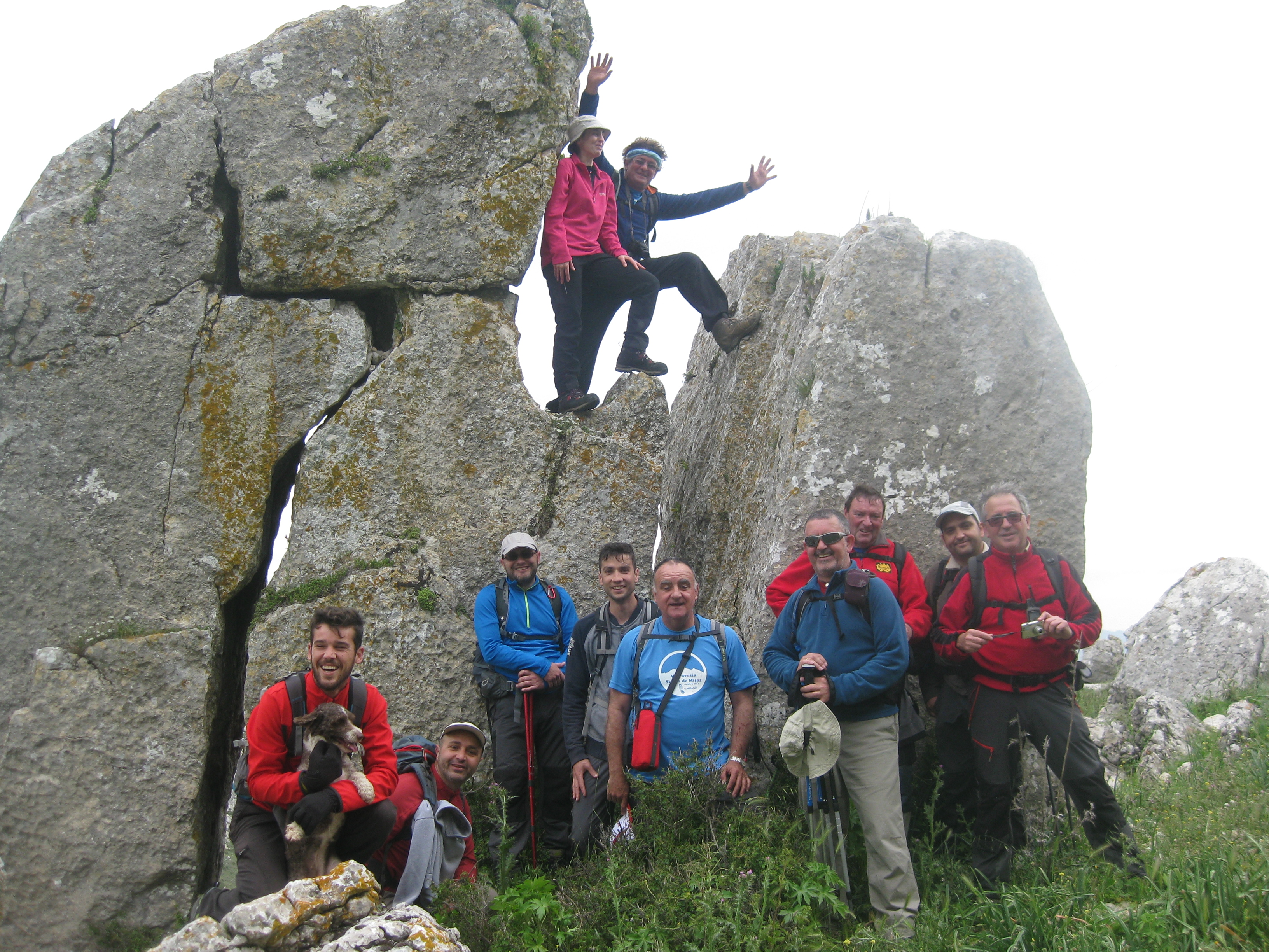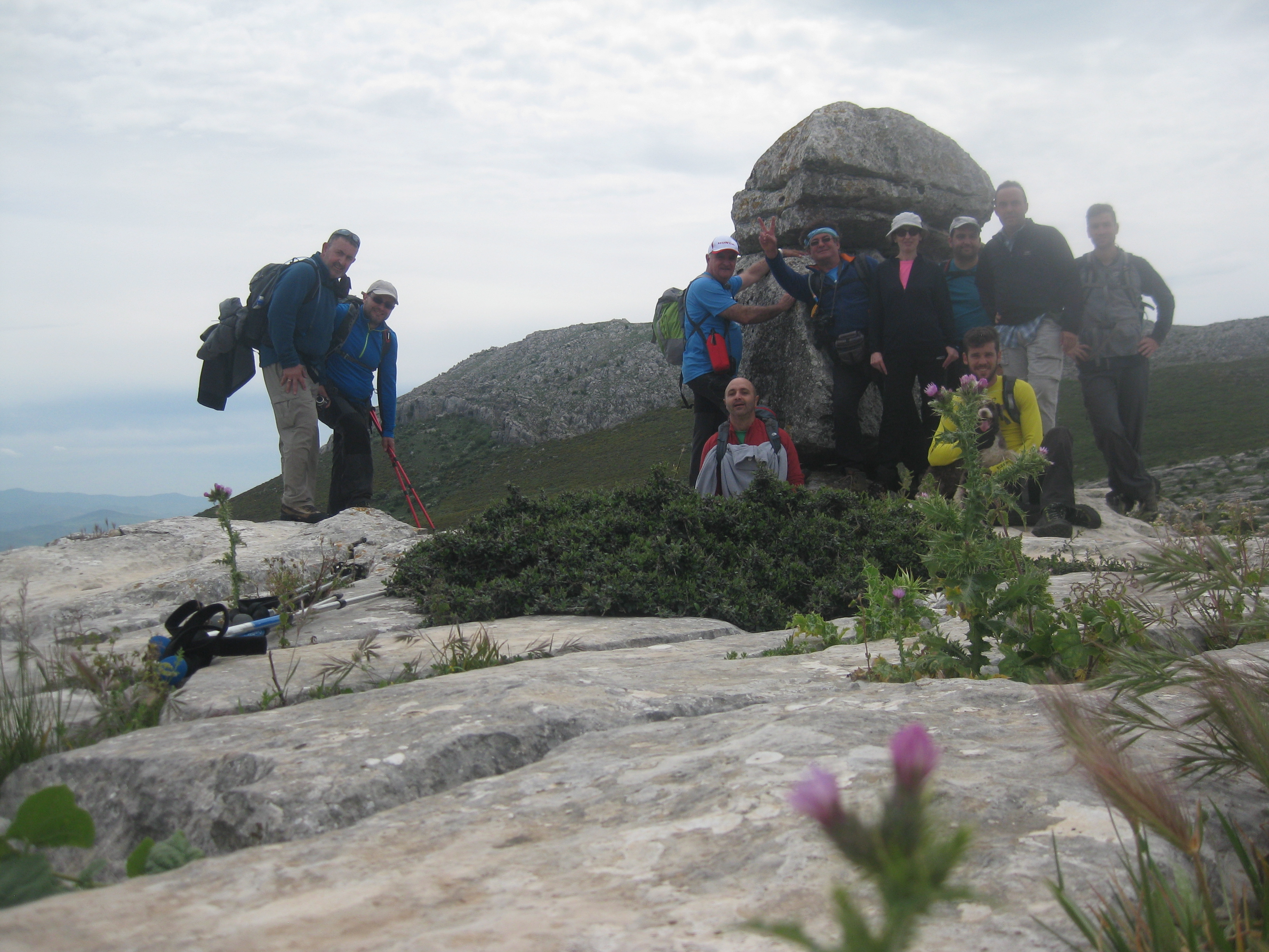 Una vez llegado al Pueblo del Valle de Abdalajís, buscamos la venta Atanores, donde desayunamos y justo desde hay partimos en nuestra ruta de hoy. Pasamos por una fuente y empezamos a subir, justo detrás del Cementerio, para empezar una subida, entre piedras y palmitos, que se hace algo dificultoso. Vamos ganando altura, hasta llegar a un collado a nuestra izquierda. Seguimos por una cañada, algunos y otros siguen subiendo, hasta llegar a una paredes de calizas muy sorprendentes. Nos juntamos en un puerto, y seguimos esta vez a la derecha, pasando por una zona espectacular. La Capilla, ya se ve, cubierta por una intensa niebla. Un poco mas adelante, vemos un poste indicativo, donde tomamos un tentempié. Luego seguimos la indicación y nos metemos en un gran aulagar, que salvamos como podemos. Ya estamos al pie de la cumbre. Una trepada y ya estamos en la cima. No podemos disfrutar, mucho de las vistas, el día esta muy nublado. Fotillos y para abajo. Volvemos, hasta el poste indicativo y nos adentramos en el Torcalillo, una zona preciosa, hasta llegar a las ruinas del Cortijo Charcon. En vez de coger por el carril, seguimos a una manguera de agua y nos adentramos en un barranco, muy deteriorado por las fuertes lluvias de hace algunos años. Poco a poco vamos bajando, ya se ve el pueblo. Llegamos a una zona recreativa, con barbacoas y cruzamos un campo, hasta llegar de nuevo a la venta Atanores, donde disfrutamos de un buen plato de chivo.