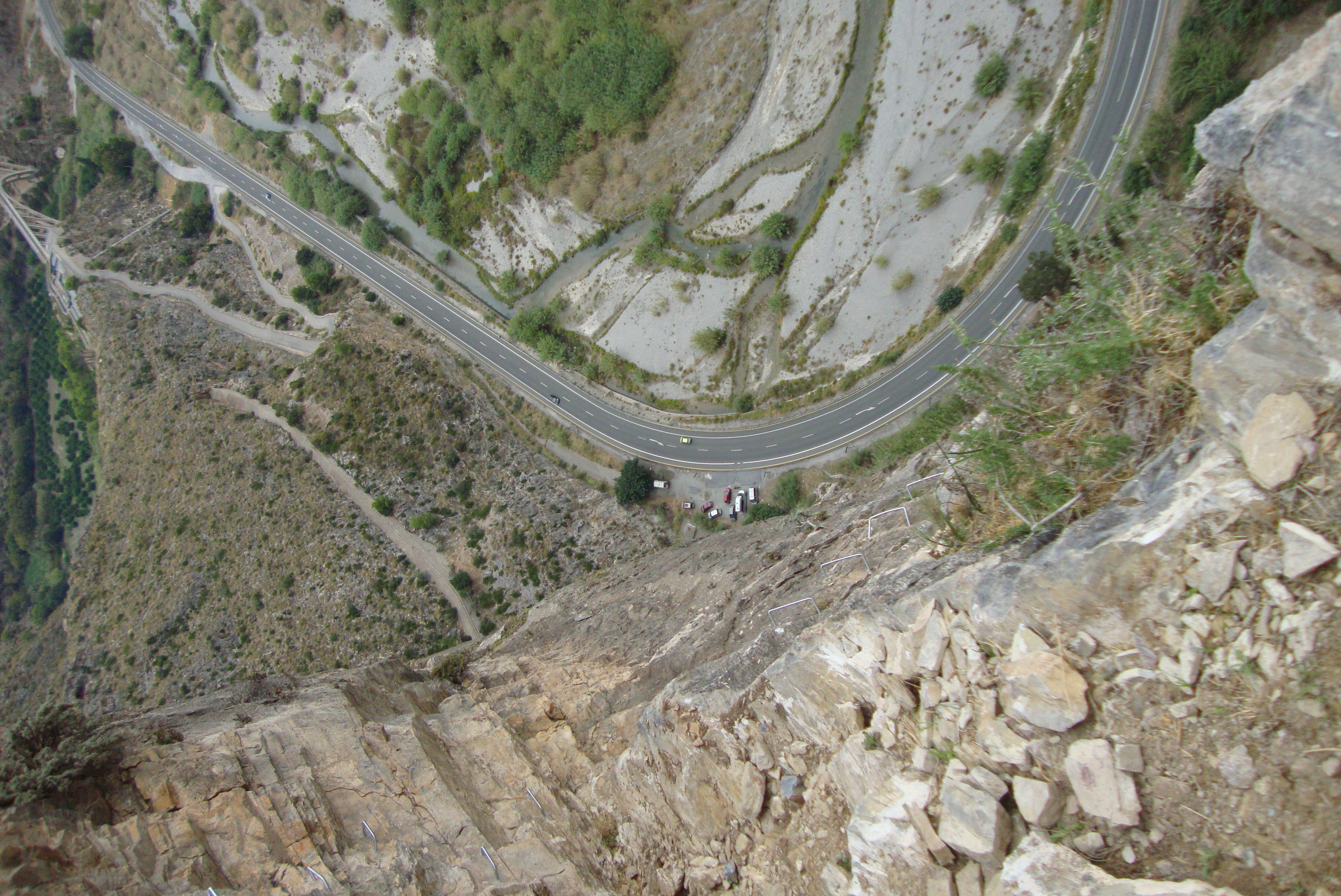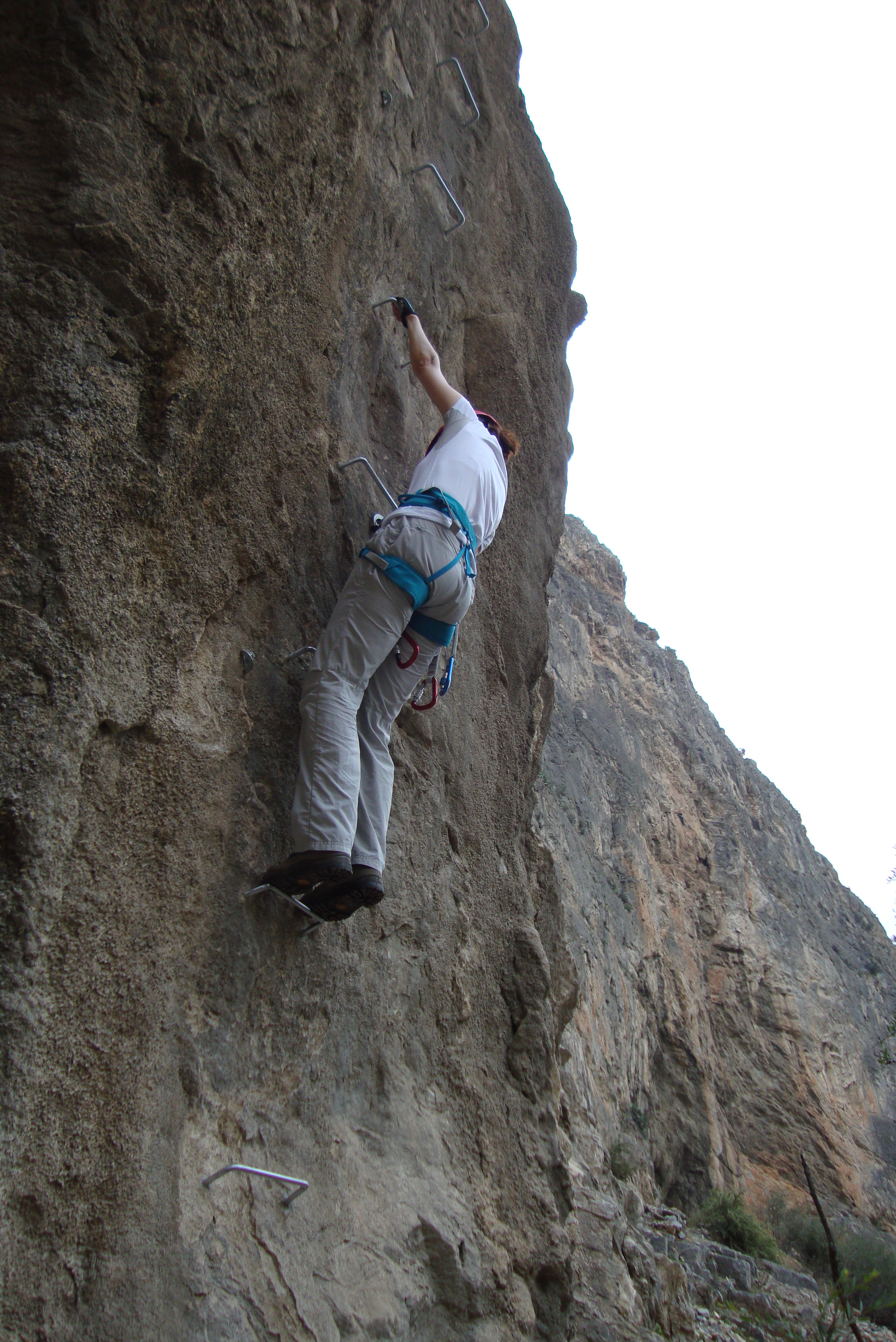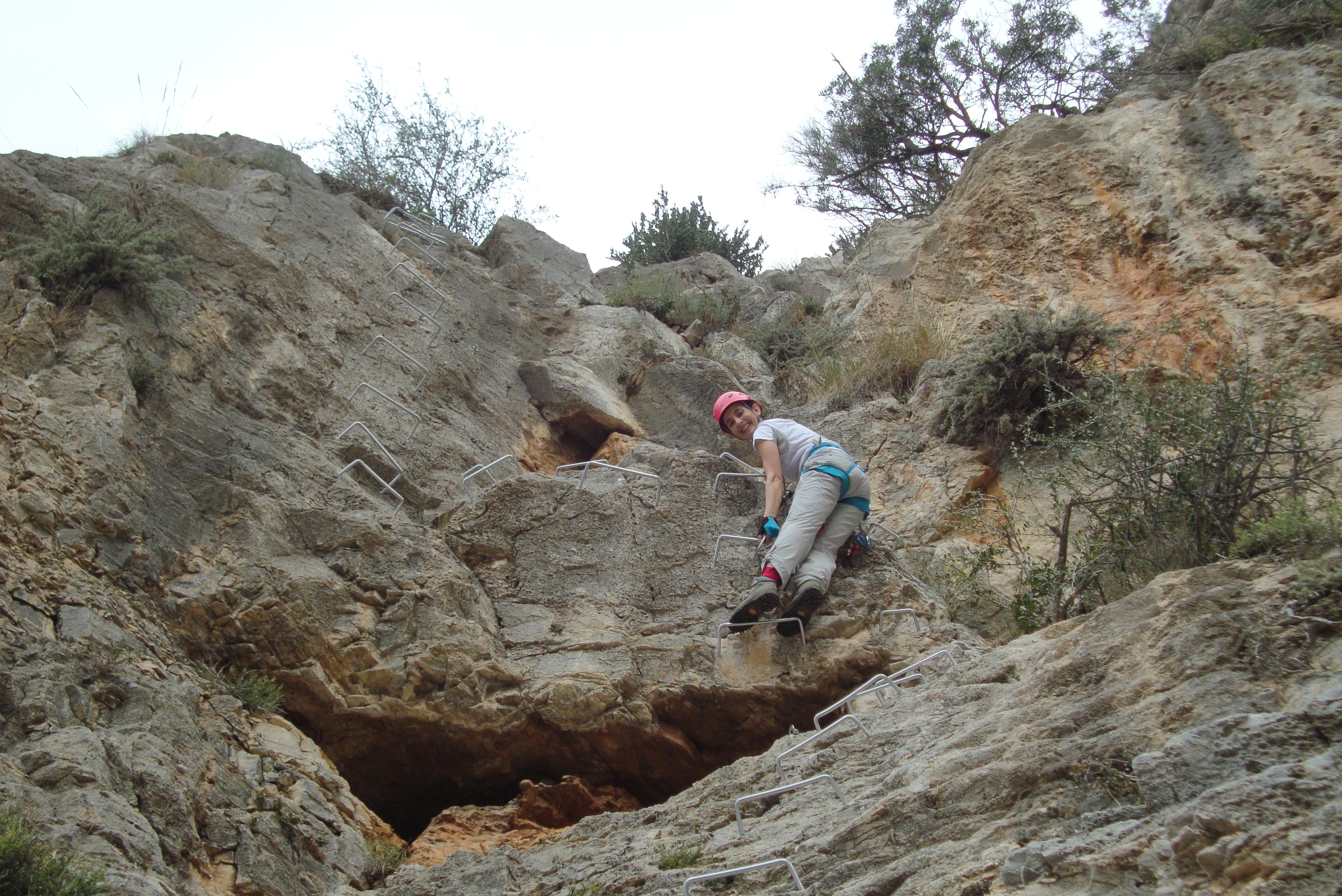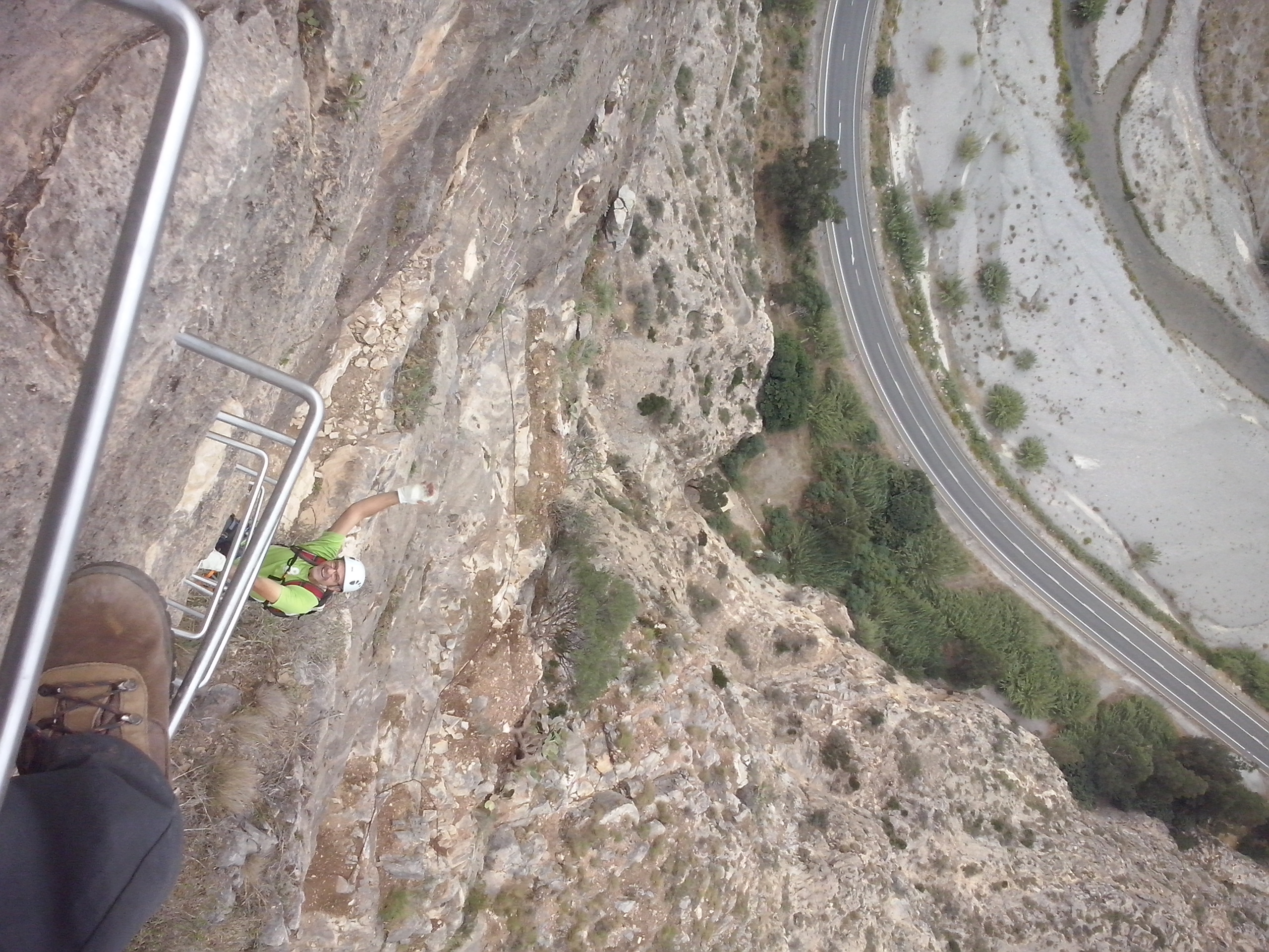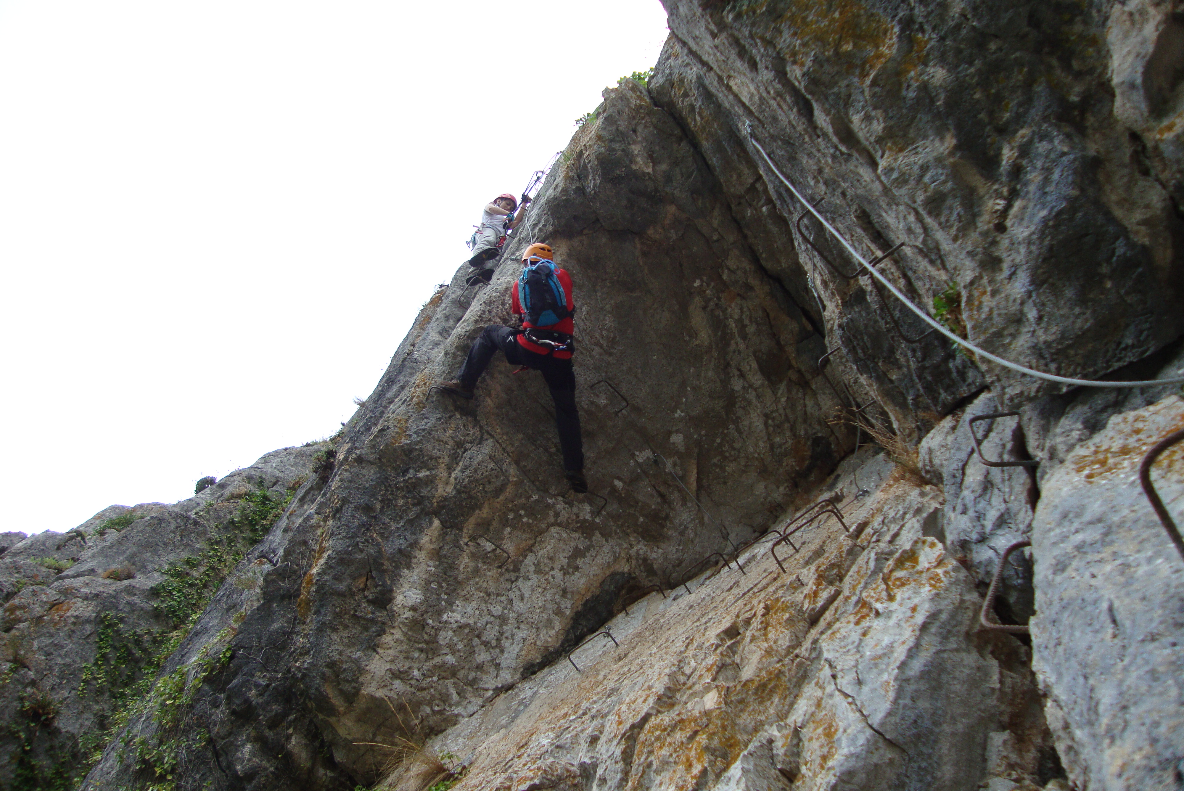 Se trata de una subida en vertical de unos 250 metros en unos 300 metros de recorrido, bien equipada. Tengo que decir que no es una subida dificultosa, se hace sin muchas complicaciones siempre y cuando no se sufra de vértigo; con buenos agarres, peldaños juntitos y sólo algunas zonas extraplomadas que al final te hacen sudar.
