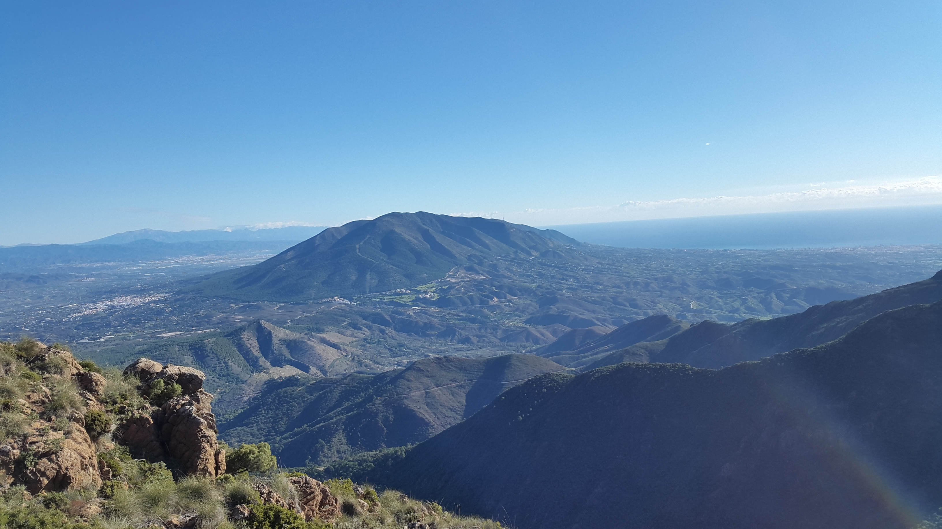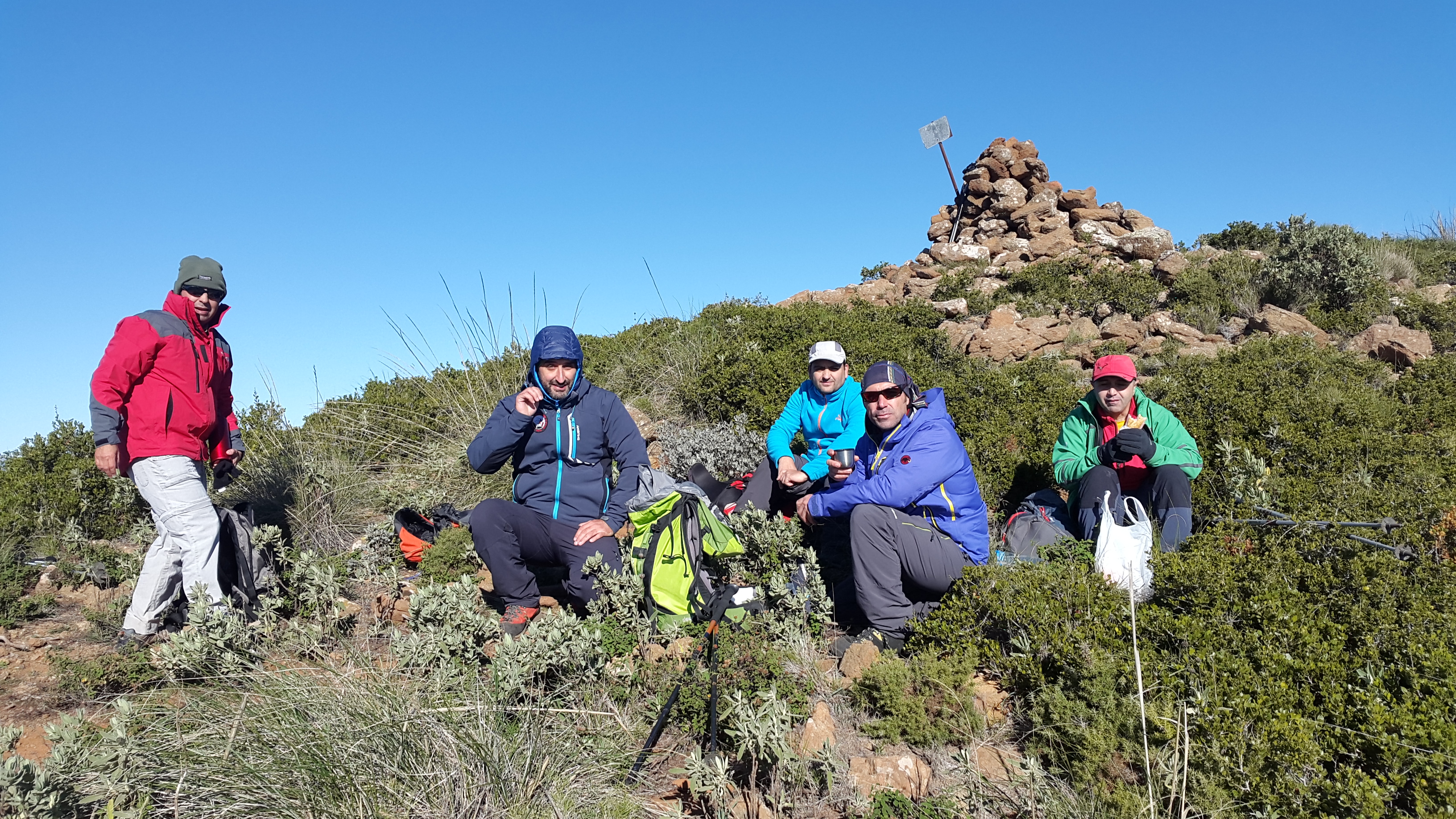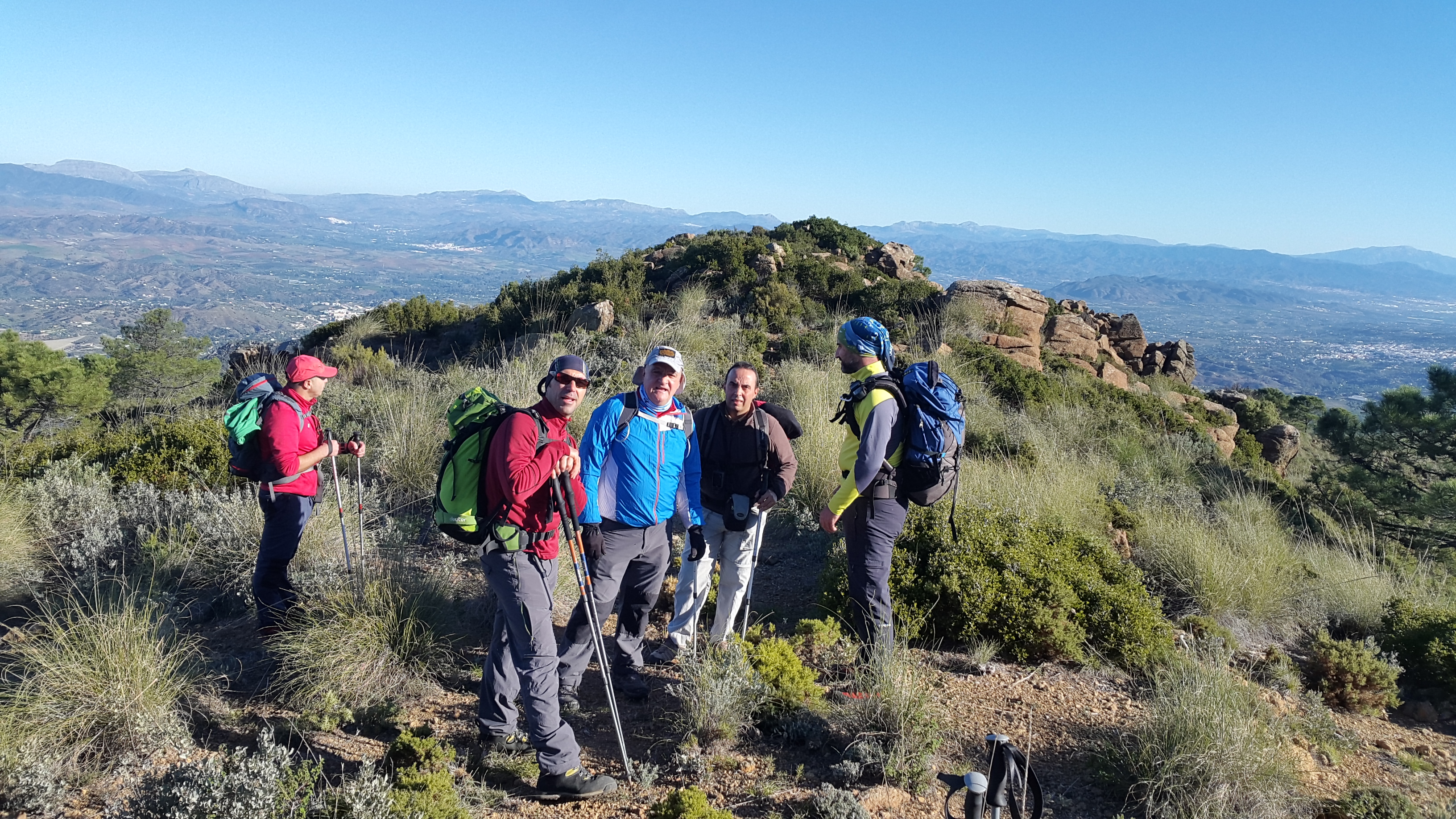 Nos reunimos sobre las 8:45 h. en el cortijo de la Albuquería, lugar de comienzo de esta ruta. Empezamos por el sendero de Barranco Blanco que fuimos remontando hasta conectar con una pista, en todo momento caminamos por el típico bosque mediterráneo, entre encinas, alcornoques, también madroños y los arbustos típicos. Continuamos por la pista y tras un rato llegamos a un cruce en el que nos desviamos en dirección al Pico Águila, por la pista continuamos hasta llegar a la altura de una balsa de agua, donde a la izquierda comienza un sendero que asciende hasta la cima. El sendero tiene varios tramos más inclinados y con algo de piedra suelta, siendo todavía bosque mediterráneo y algunas zonas con pinos de repoblación. La vegetación continuo hasta que llegamos a la cresta, tramo final que nos llevo hasta la cima, pasando por varias antecimas antes. Tuvimos la suerte de disfrutar de un día muy despejado y en la cima las vistas de todas las sierras eran espectaculares, divisando Sierra Nevada, la Sierra Tejeda, Almijara y Alhama, el Arco Calizo, el Torcal, la Sierra del Valle, Sierra de la Huma, Sierra Prieta, Sierra de las Nieves, Sierra Blanca y por supuesto la Sierra de Mijas. También pudimos divisar perfectamente el Estrecho de Gibraltar y el Rif en Marruecos. De destacar el aire frío que soplaba con fuerza en la cima, el resto del camino el tiempo fue estupendo. El regreso lo realizamos por la misma senda. Agradecer a Antonio Villalba por la preparación de la ruta y a todos los asistentes por la buena compañía.