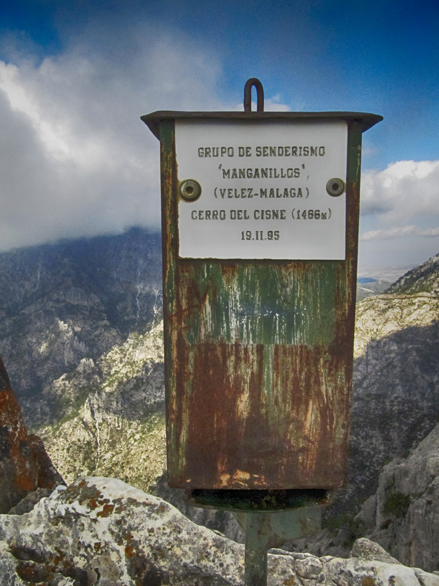 Un poco mas adelante después de una curva muy cerrada a la derecha vemos nuestra senda. Ahora empieza lo bueno. Una gran pendiente, sin tregua nos llevara a la cumbre. Antes llegamos a un collado, donde las vistas del Almendrón, Navachica, Tajos del Sol etc., son espectaculares. Seguimos a la derecha y nos ayudamos con las manos en un paso algo complicado, pasamos por una pequeña cueva y ya estamos en la antecumbre. Pasamos un Lapiaz y ya estamos en la cumbre.
