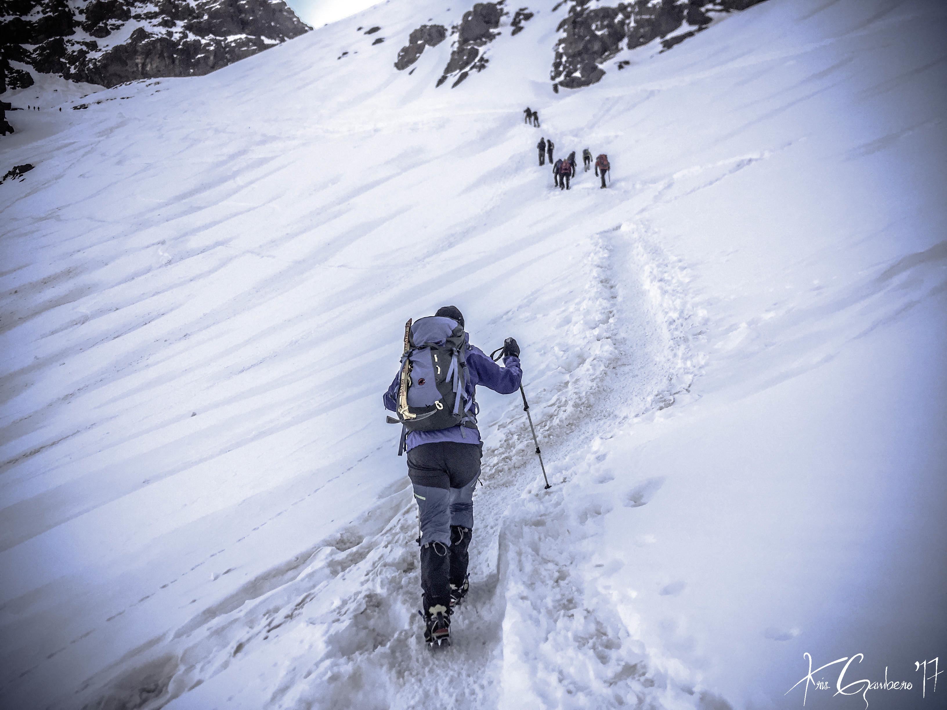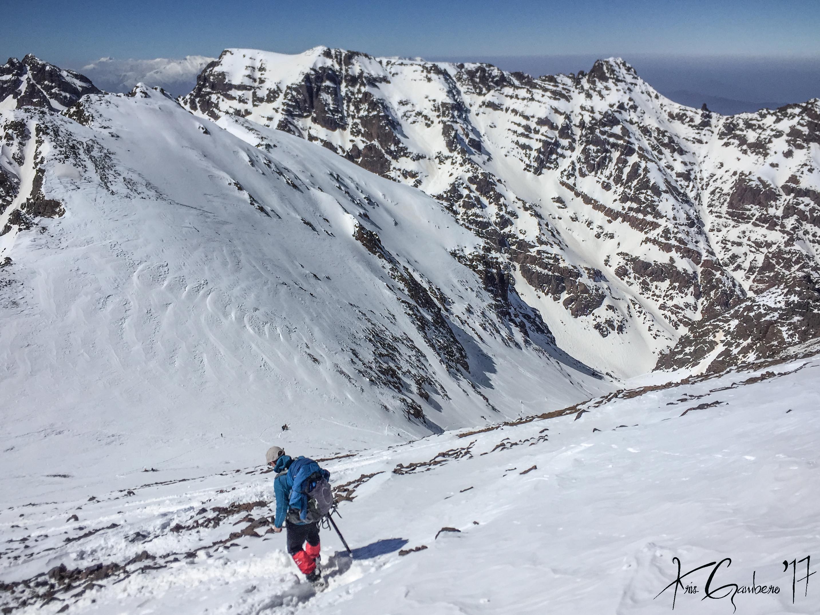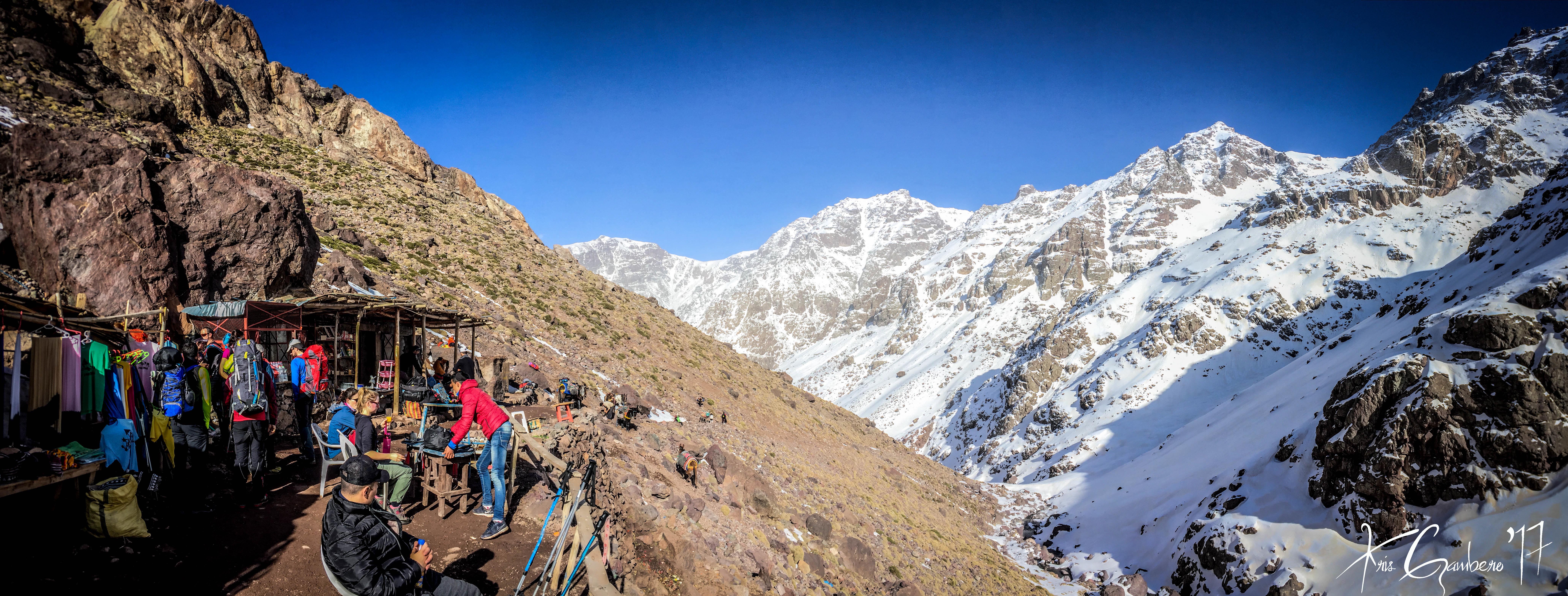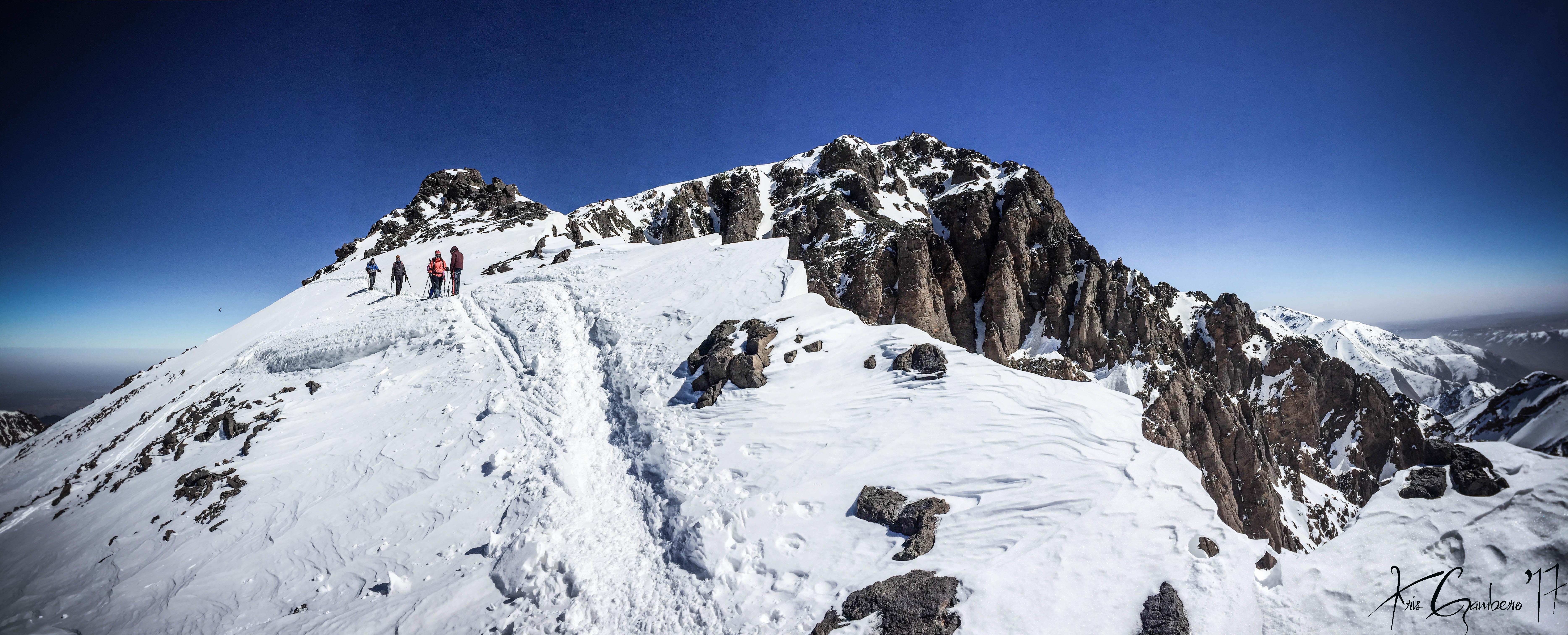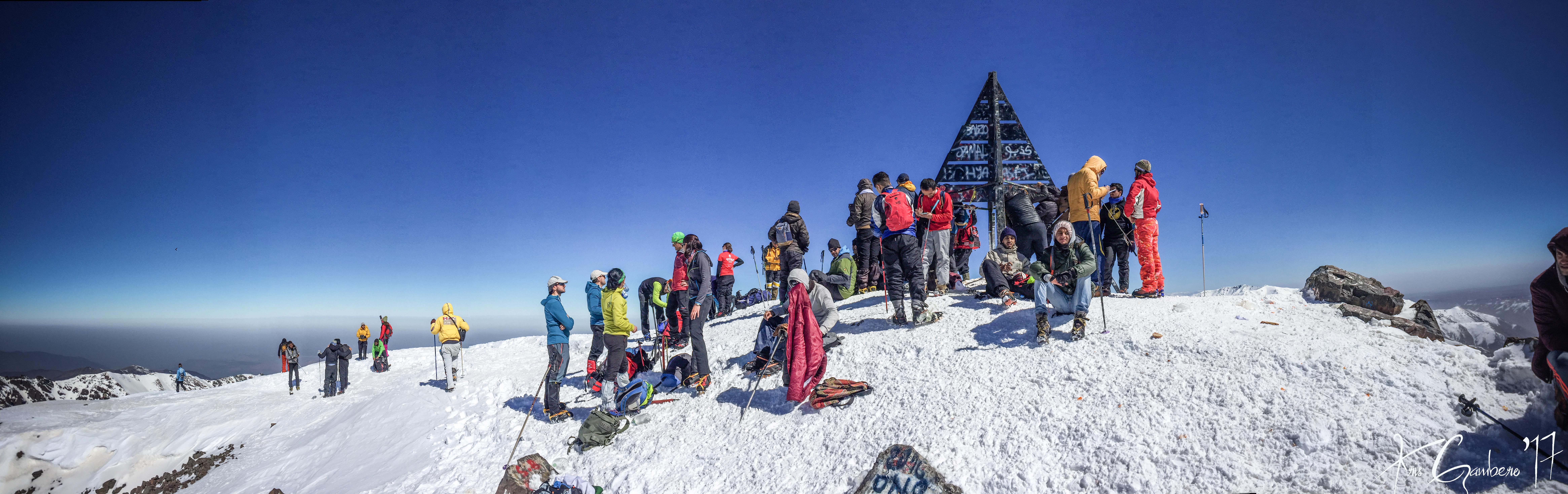 Buenos dias, el pasado 26 de febrero tres miembros del Club Almoradú, Ismael González, Rafael Ramos y Cristóbal Gambero junto a 4 amigos más, hicimos cumbre en el Jbel Toubkal (4.167 m), la cumbre más alta de Marruecos y del Norte de Africa. Lo hicimos en dos jornadas, la primera partimos del pueblo de Imlil a 1750m hasta el Refugio de Les Mouflons a 3.200 m, allí dormimos y aclimatamos para el siguiente día atacar muy temprano la cumbre del Jbel Toubkal. Una subida muy empinada ya que en 3,5 km tuvimos que superar un desnivel de 950 m hasta alcanzar los 4.167 m, es una ascensión tecnicamente fácil, solo se podría presentar problemas por el mal de altura, que en nuestro caso no se presentó. Las condiciones meteorológicas fueron estupendas, tiempo despejado, sin viento y sin nada de frio. Después de unas 3h30m de subida sin descanso, a las 11h30m hicimos cumbre, un paisaje increíble, el Atlas marroquí es impresionante. La bajada la realizamos por el mismo sitio, ruta conocida como Ikhibi sur hasta el Refugio de Les Mouflons y de ahí de nuevo a Imlil. En definitiva unos magníficos días en un país que nos sorprendió por sus paisajes y gentes.