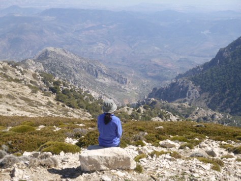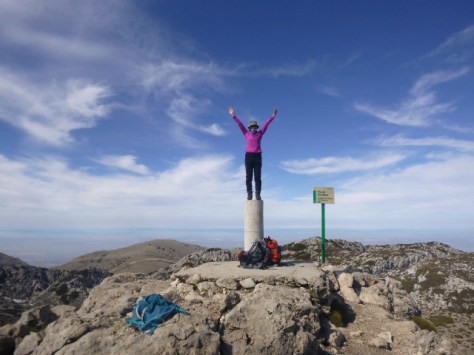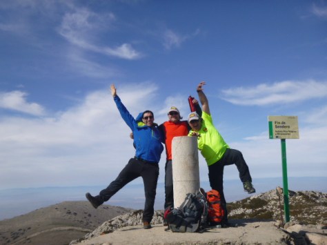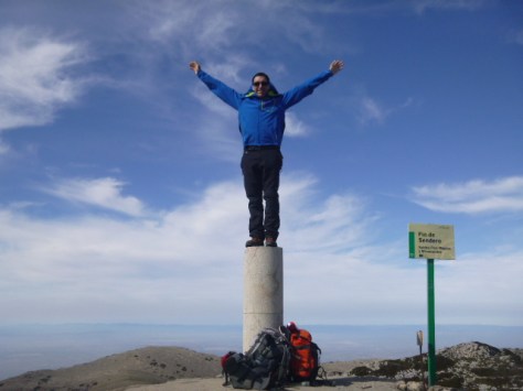Sobre las tres de la tarde llegamos al pico Mágina, no sin antes equivocarnos y creernos que era la lomita anterior que cruzamos, pues el pico Mágina desde el lado que nosotros lo abordamos, es de esos que parece que nunca llega, y lo confundes con otros piquitos que cruzas antes. Fotos de rigor, y tirando millas para abajo, que ahora si hacía un viento y un fresquito que no tenía nada que ver con el calor que habíamos pasado antes.