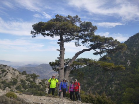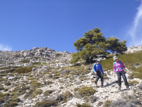 Bajamos por la cara sur, siguiendo mas o menos lo que sería la ruta tradicional, señalizada. La bajada se hizo bastante dura, el terreno estaba bastante suelto y pedregoso, lo que la hizo muy incómoda y larga, pero atravesamos un espectacular bosque de pinos centenarios que la amenizaron y hicieron de broche final a una ruta que no tiene desperdicio, tanto la subida con esas formaciones en el barranco, la cresta con sus vistas y el refugio, y la bajada a través de ese bosque espectacular.