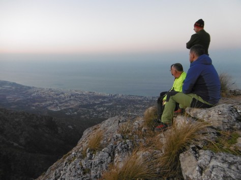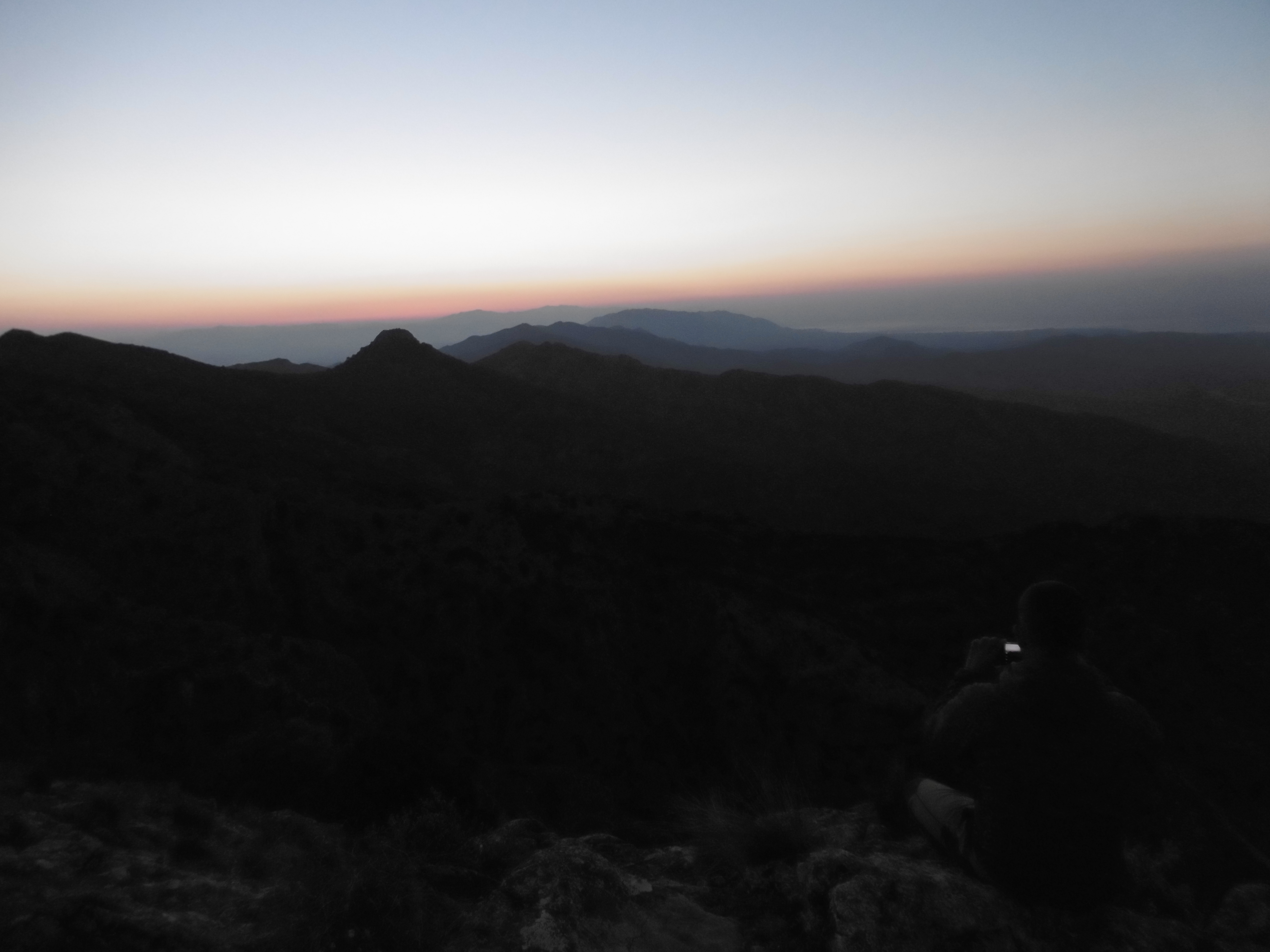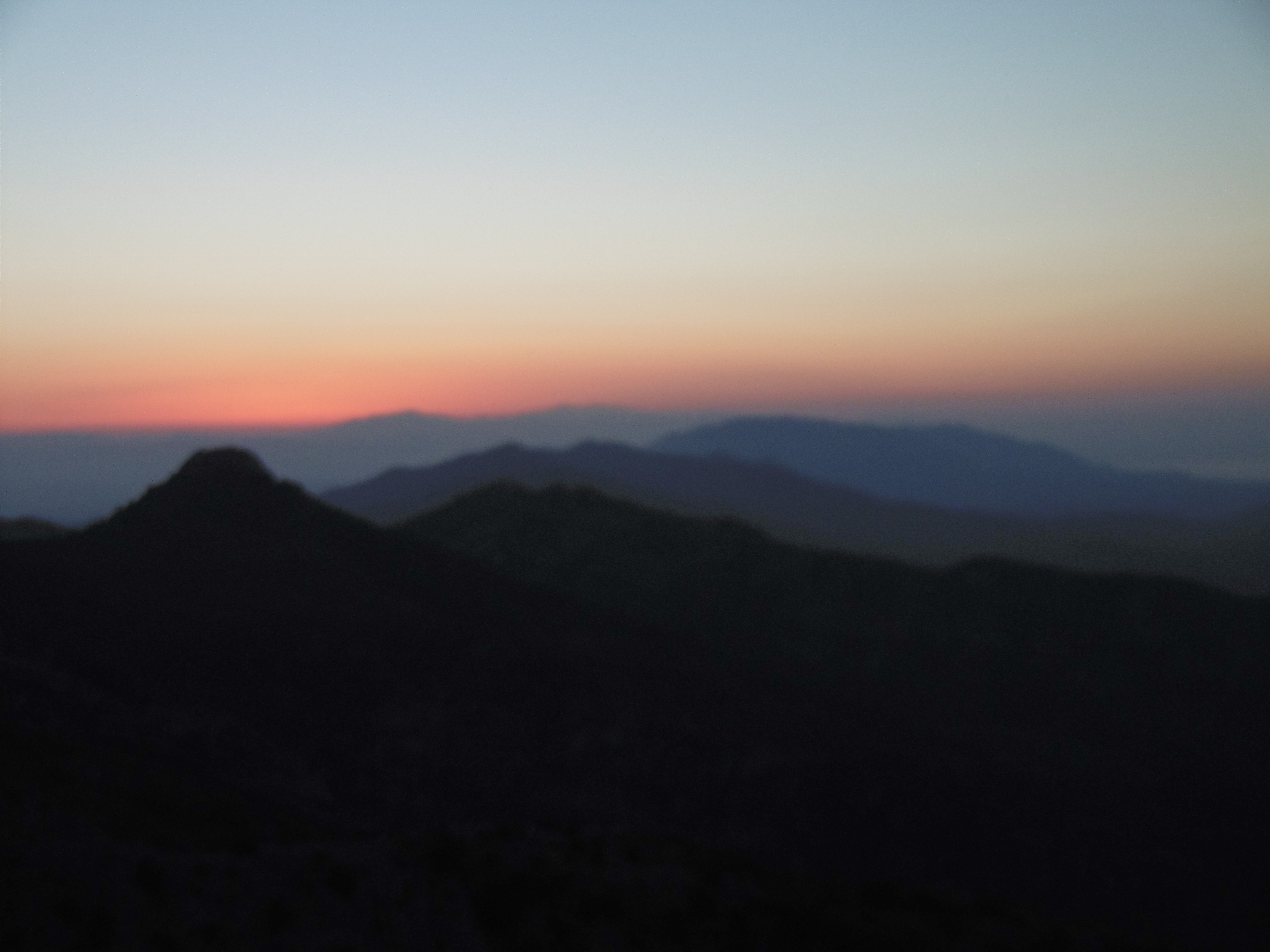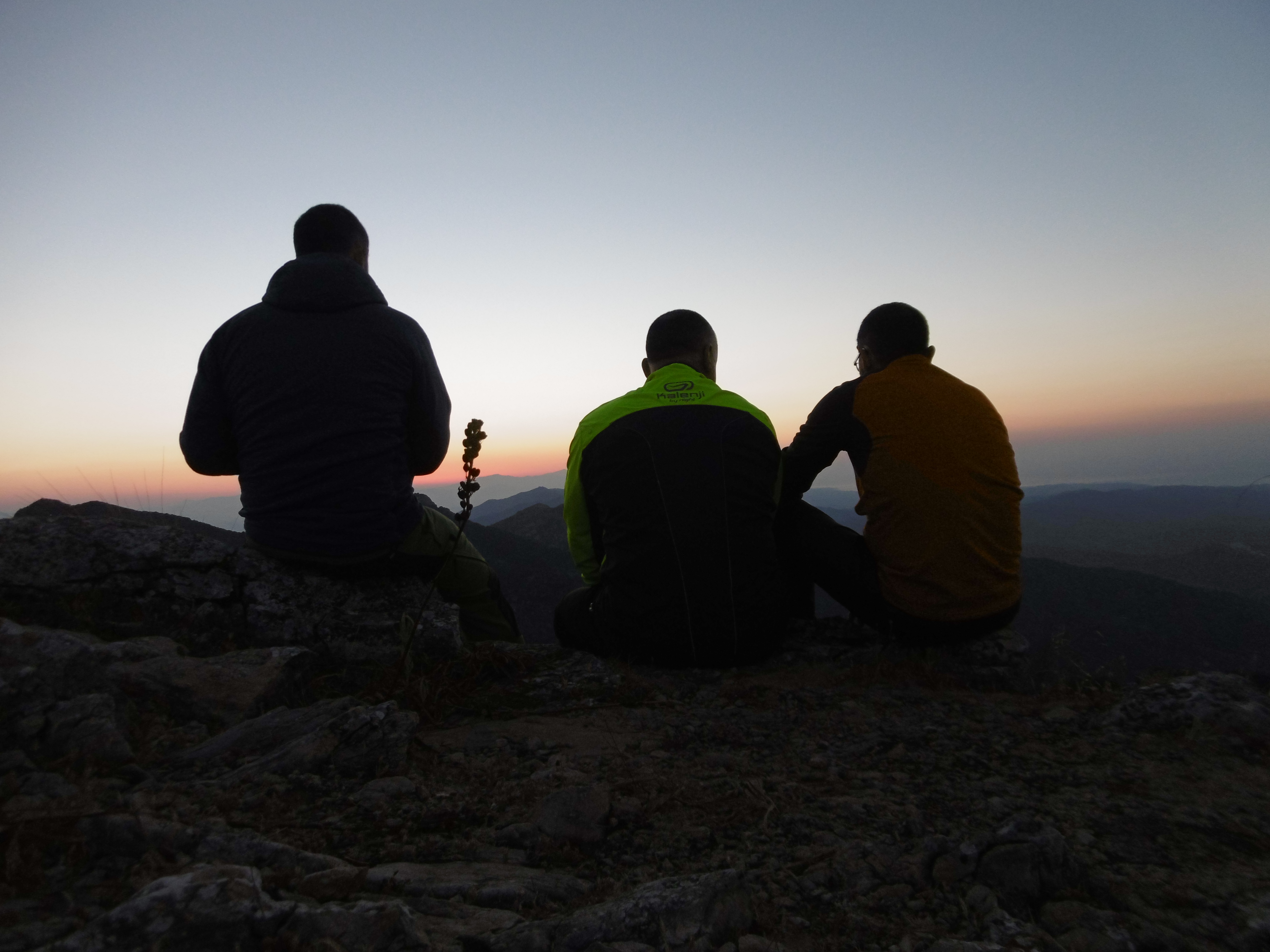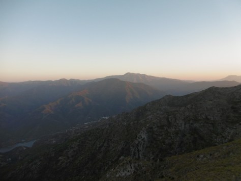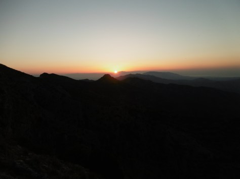 Después de tomarnos algo, nos fuimos a los bancales que hay cercanos a la cima, donde pusimos los sacos y pasamos la noche hasta el amanecer, con las primeras luces aprovechamos para sacar unas fotos y después rápidamente comenzamos el descenso antes de que los calores propios de la época hicieran que caminar por la sierra fuera casi imposible.