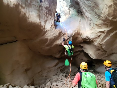 Al final de los rapeles, gracias a Dios estaba la surgencia del río Bocaleones. Algunos estábamos a punto de una lipotimia. Otra vez ha sido calentón y refrescón.