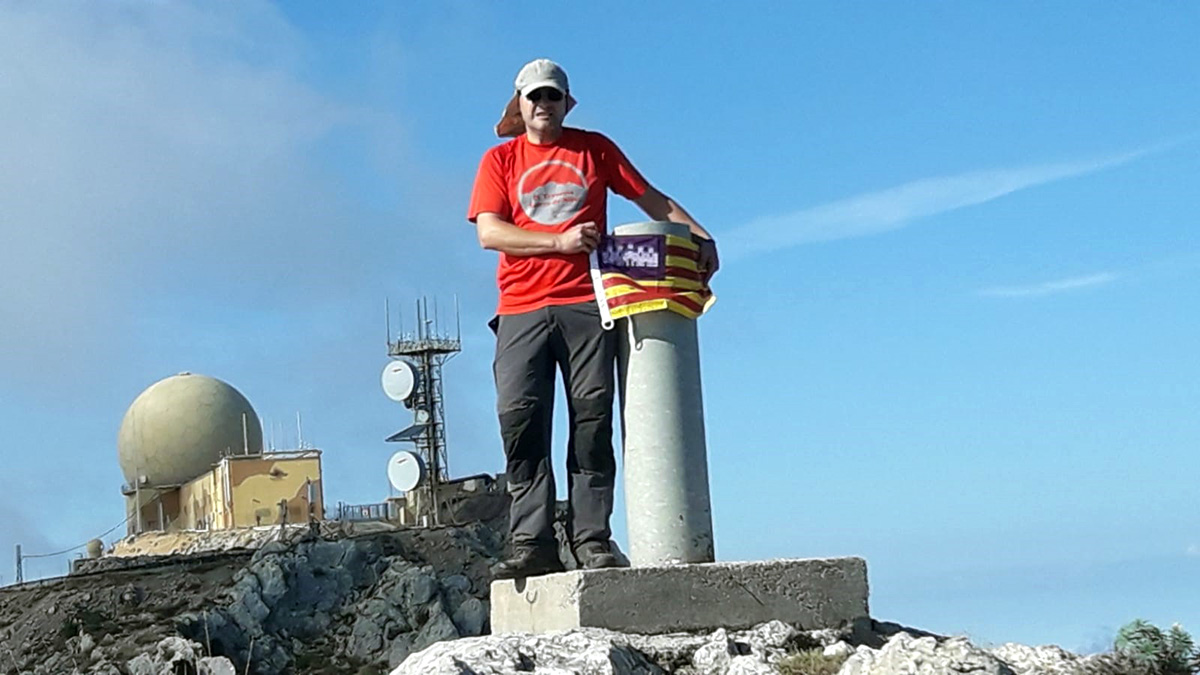Después de dos horas y media; algo más de 800 metros de acumulado positivo ya estamos en el vértice del Puig Major (1414 m).