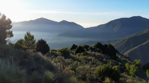 La ruta comenzó por zonas de baja montaña del Chaparral dirección este, pasando por zonas de matorrales, y un bosque de pino canario.