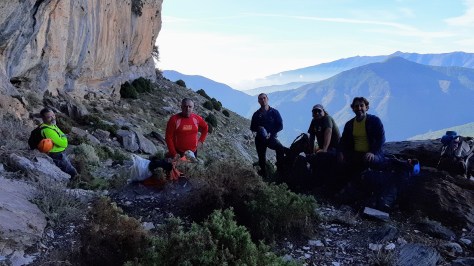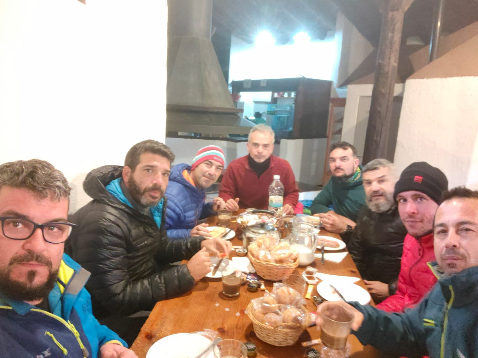 Poco a poco fuimos remontando altura y después de varias paradas llegamos a la Piedra de los Ladrones, donde cogimos a la derecha para más tarde llegar al Puntal de Juntillas 3149 mts. sobre las 4 de la tarde. Después de unas fotos, disfrutar del tiempo y tomar algo calentito comenzamos el regreso hacia el refugio, donde después de una buena cena y unas risas hicimos noche, para la mañana siguiente después del desayuno regresar a Fuengirola. Se paso muy buen fin de semana, con buen tiempo y muy buena compañía.