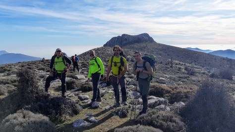 Esta ruta es un clásico del montañismo malagueño, comenzamos nuestra ruta sobre las 9 de la mañana, ruta desde el mismo pie de la Cueva de Nerja a unos 185m de altitud. El hecho de comenzar aquí vino motivado por que una barrera impedía nuestra pasó por obras en el carril de acceso hasta el área recreativa del Pinarillo, de donde en un principio teníamos previsto comenzar. Esto nos hizo buscar otra alternativa para no subir los 4 kilómetros de carril y hacer así la ruta más atractiva. A pocos metros de pasar la mencionada barrera, cogimos hacia la derecha una sendaseñalada con unos hitos que nos llevaría por toda la divisoria hasta finalmente el carril de acceso. Durante toda esta senda existen marcas de color azul e hitos de piedra para no confundirse.