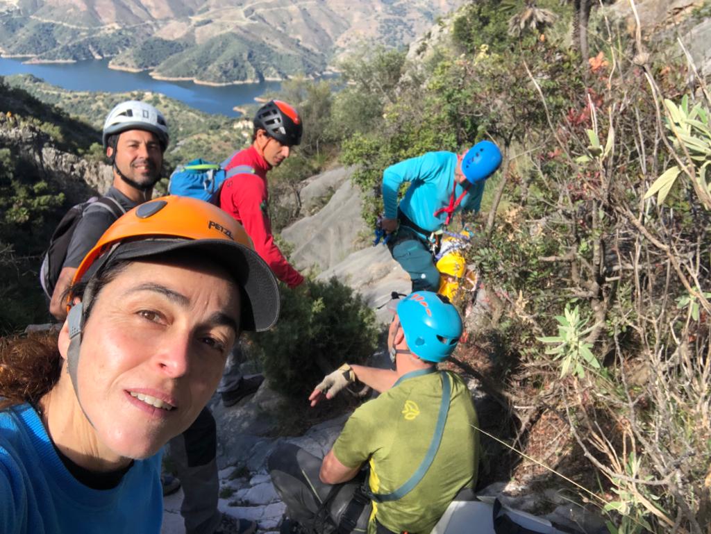 Tras tener que aplazar la actividad de la subida de la Concha por la cara sur debido a las malas condiciones de la ruta, decidimos realizar un descenso de un barranco seco, en este caso por la misma zona de Sierra Blanca, cerca del pueblo de Istán.