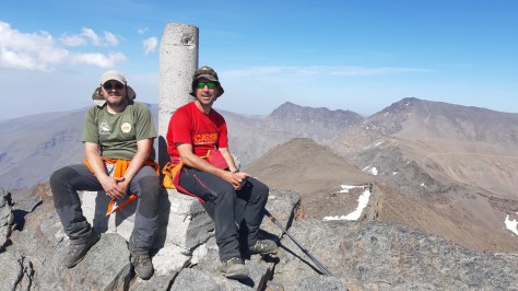 Sólo nos queda el último esfuerzo y ya estamos en la cumbre de uno de los grandes de Sierra Nevada, la Alcazaba –la cual nos brinda como siempre esas vistas y ese sosiego indescriptible, ya son más de las 14:30; parada obligada para disfrutar, descansar y reponer fuerzas–.