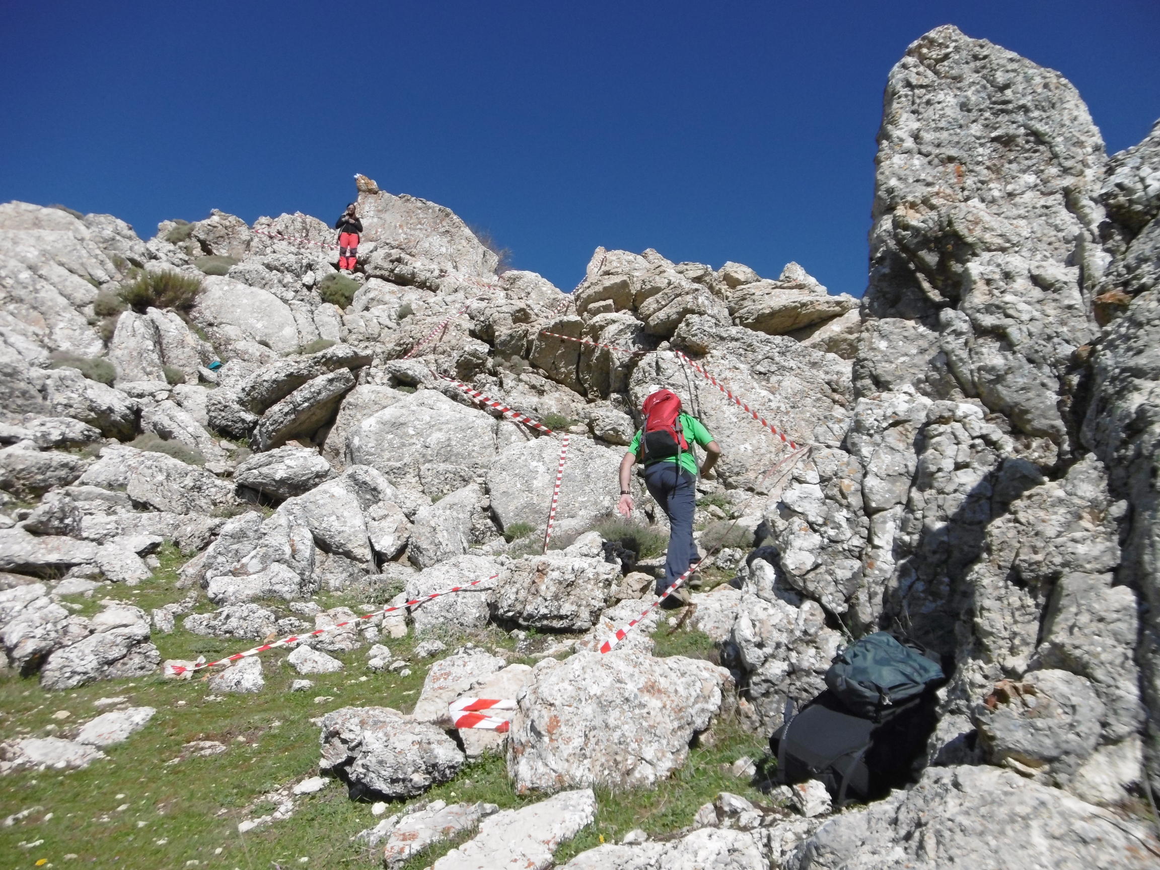 Seguimos por la pista y subimos a los Machos por su cuesta pronunciada; gracias que dejamos las mochilas antes de subir.