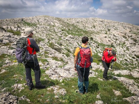 Proseguimos nuestra subida por un terreno donde el monte mediterráneo acusa la falta de precipitaciones, romeros, tomillos, enebros es la vegetación que podemos encontrarnos. Mientras más arriba… nos encontramos tramos en los cueles va desapareciendo la vegetación y la piedra caliza es la que domina el terreno.